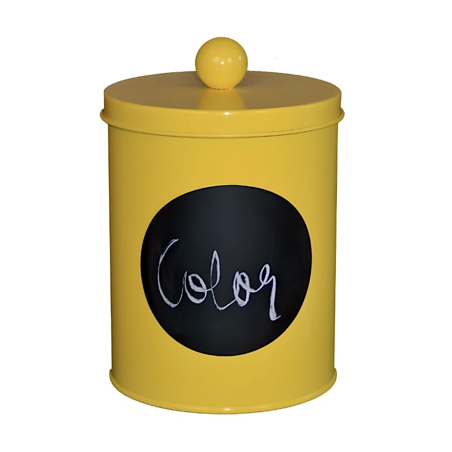 Lata de almacenamiento metálica ideal para darle un toque de color a nuestras cocinas. ¡Incluye pegatina de pizarra y tiza para personalizarlo!