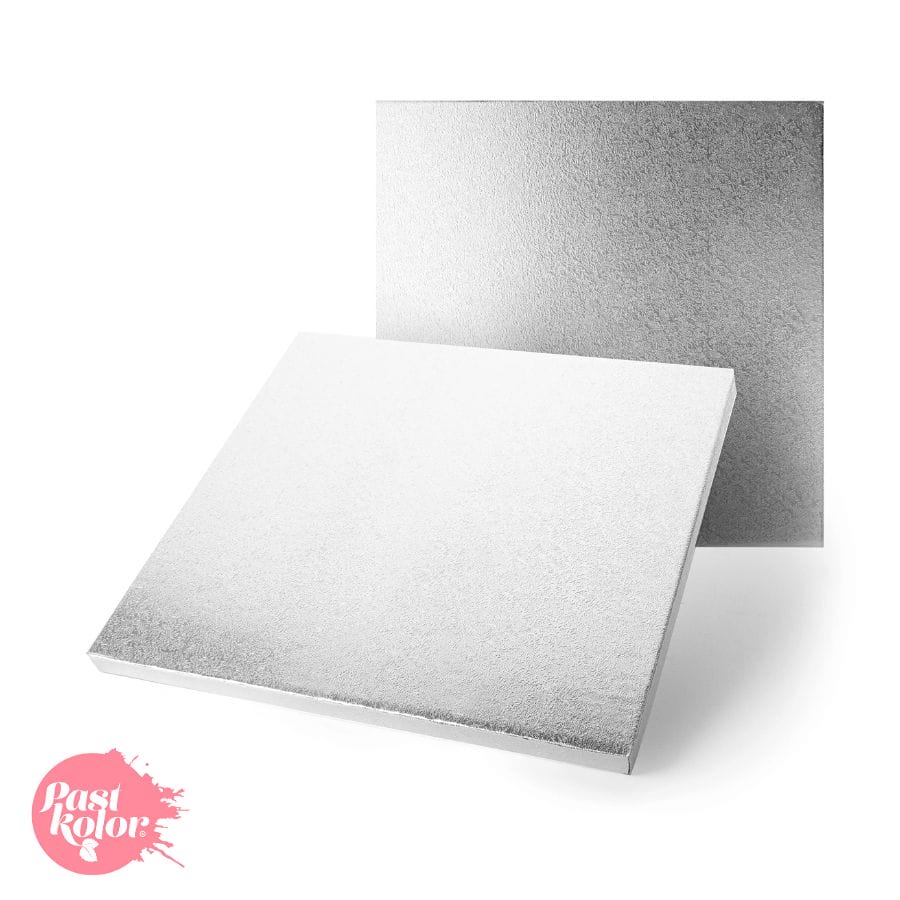 Base para tarta de color plateado brillante, con gran resistencia y de extrema rigidez, perfecta para pastelería.