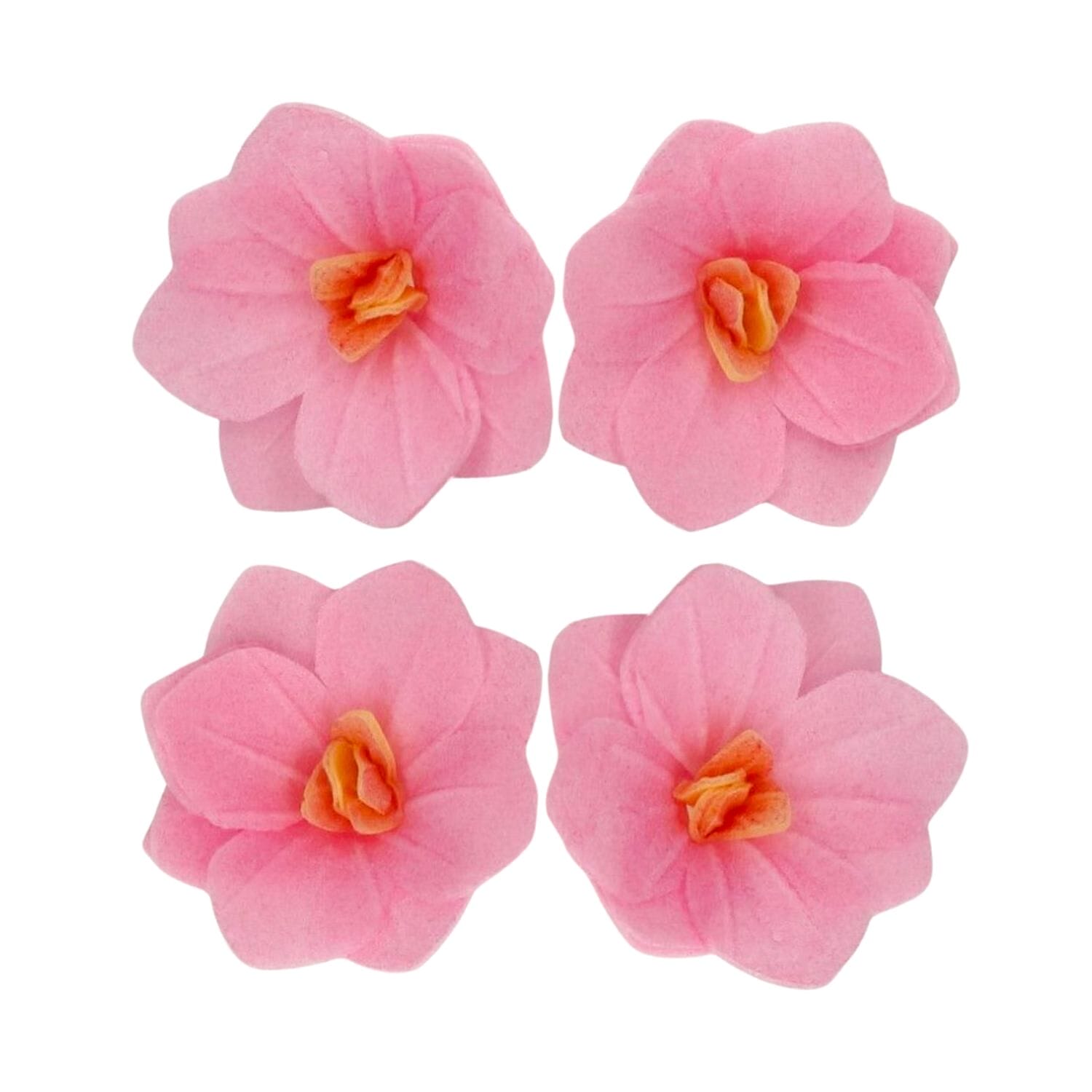 18 flores comestibles de oblea rosas y elegantes, listas para decorar tus postres con estilo y sofisticación.