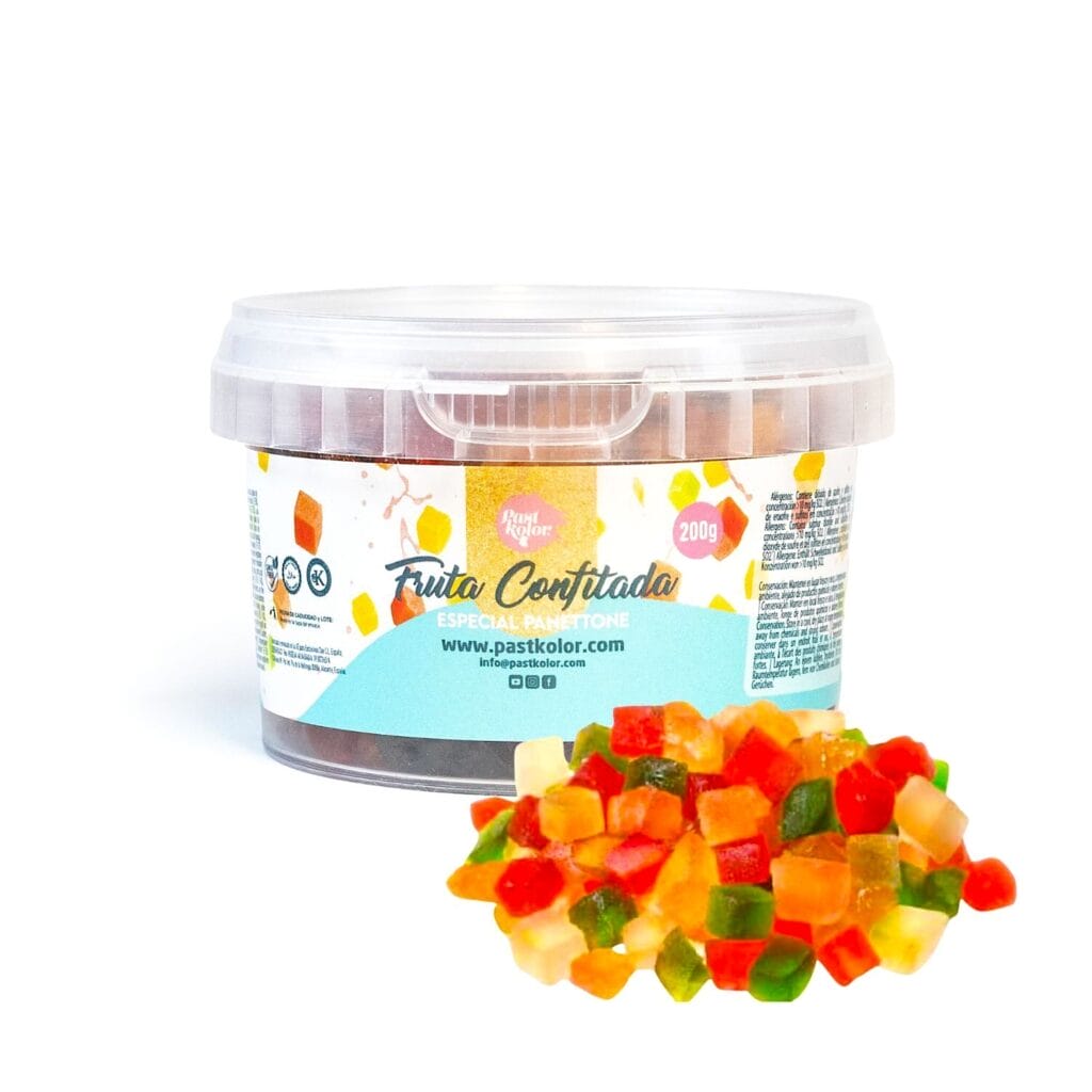 Fruta confitada en cubos, especialmente diseñada para realzar tus elaboraciones de Panettone y otras creaciones dulces, como bizcochos, tartas, plumcakes y roscón de Reyes.