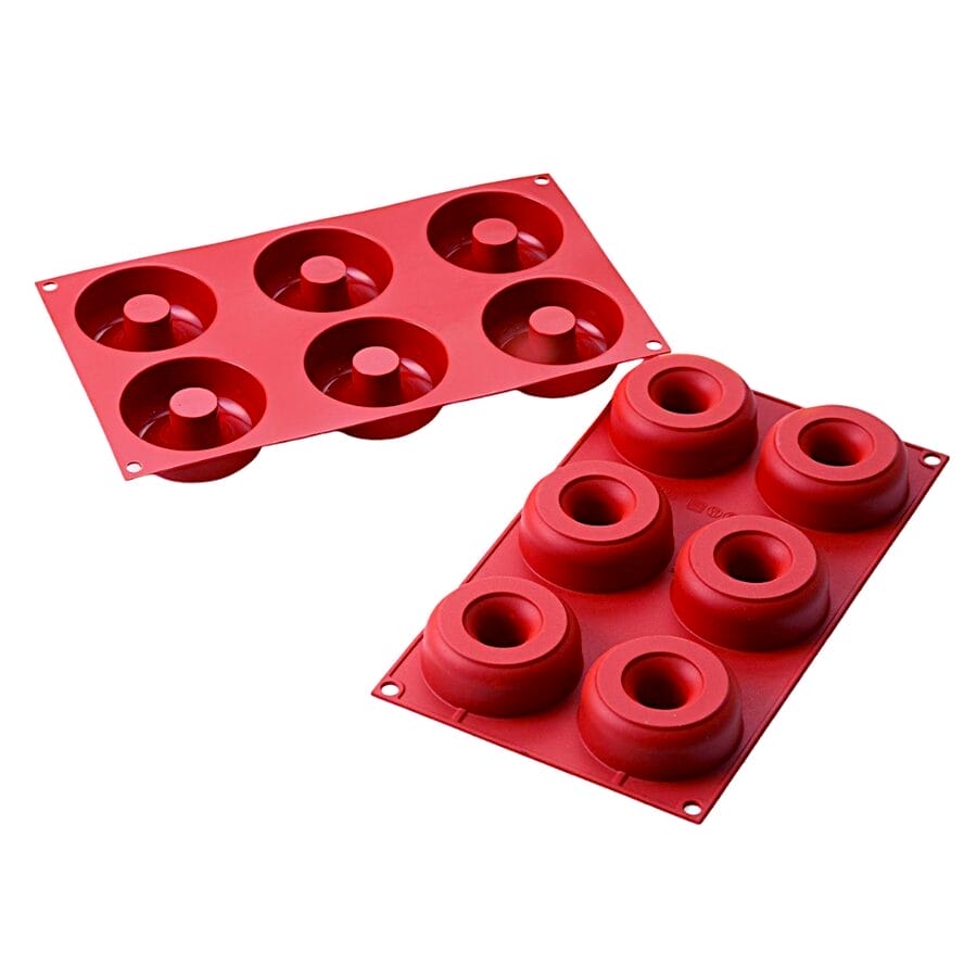 Molde de silicona rojo Silikomart ideal para conseguir 6 donuts perfectos.