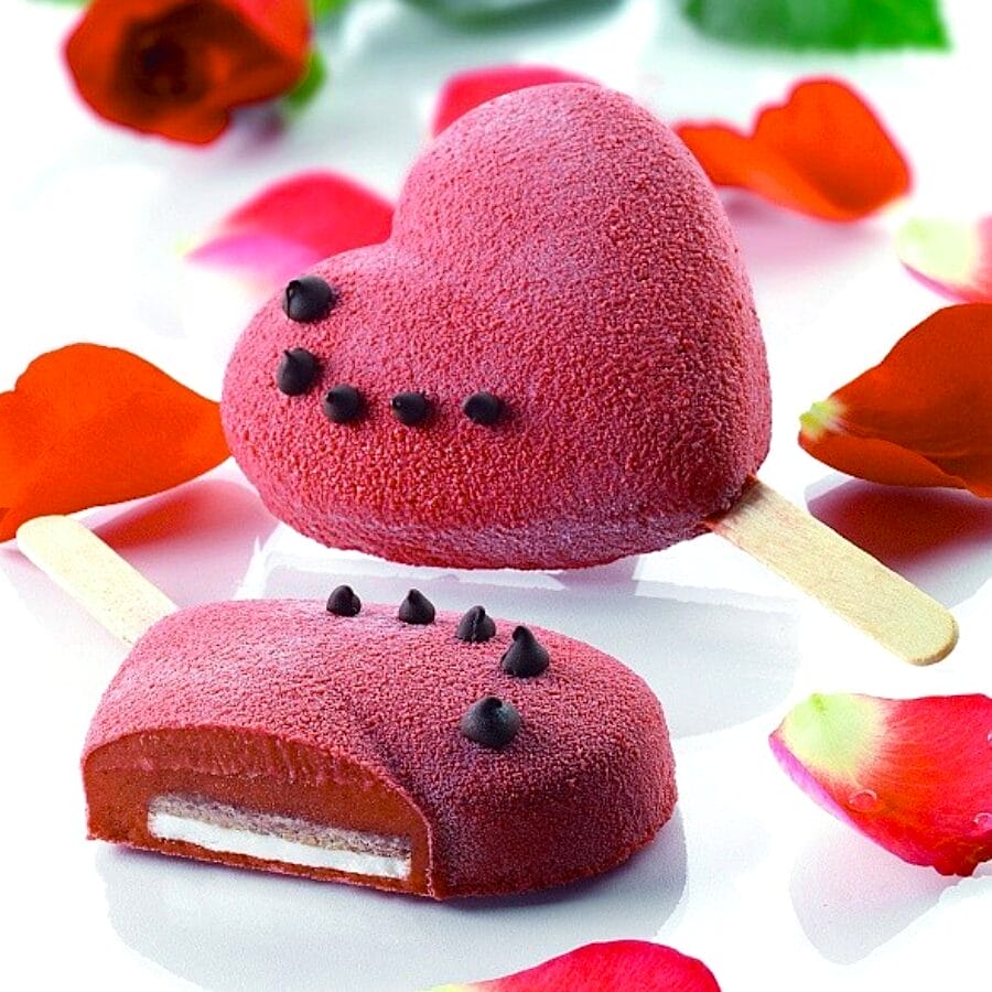 Molde de Silikomart perfecto para helados, y también “polos” de pasteles, con forma de corazón.