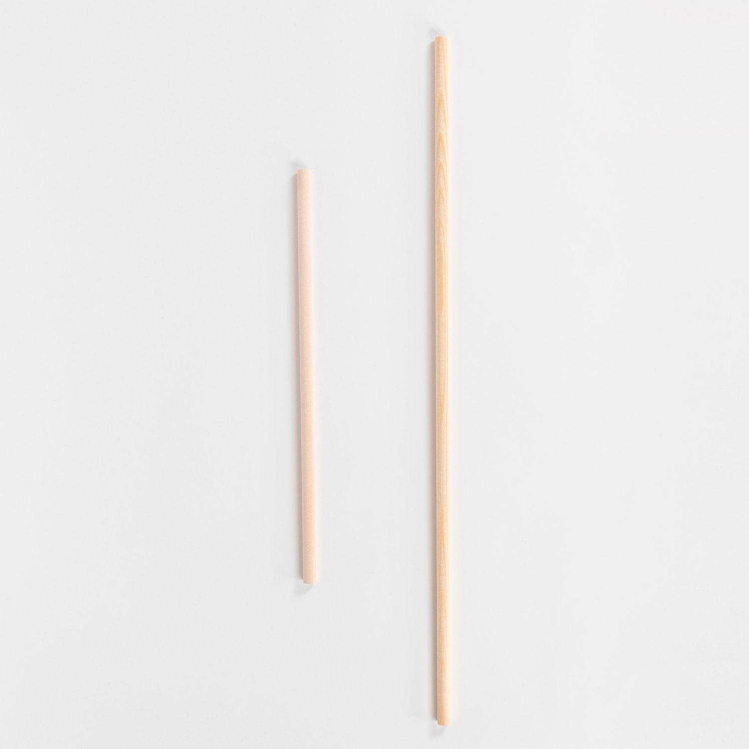 Incluye 2 palos de madera que encajan perfectamente en las bases para tartas con orificio central de En Papiers, ideales para dar mayor estabilidad y resistencia a nuestros pasteles de varios pisos.