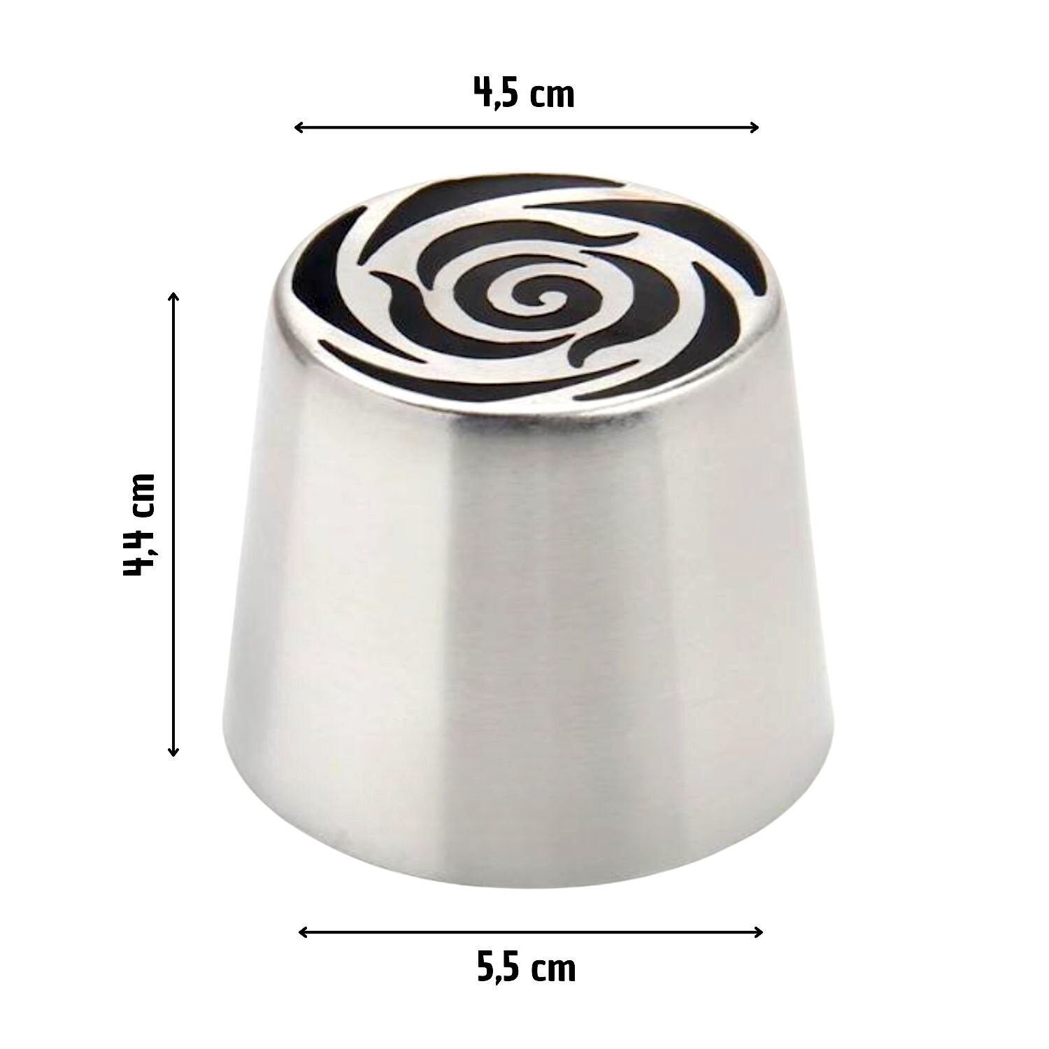 Medidas aprox.: Ø superior 4,5 cm – Ø inferior 5,5 cm – altura 4,4 cm.