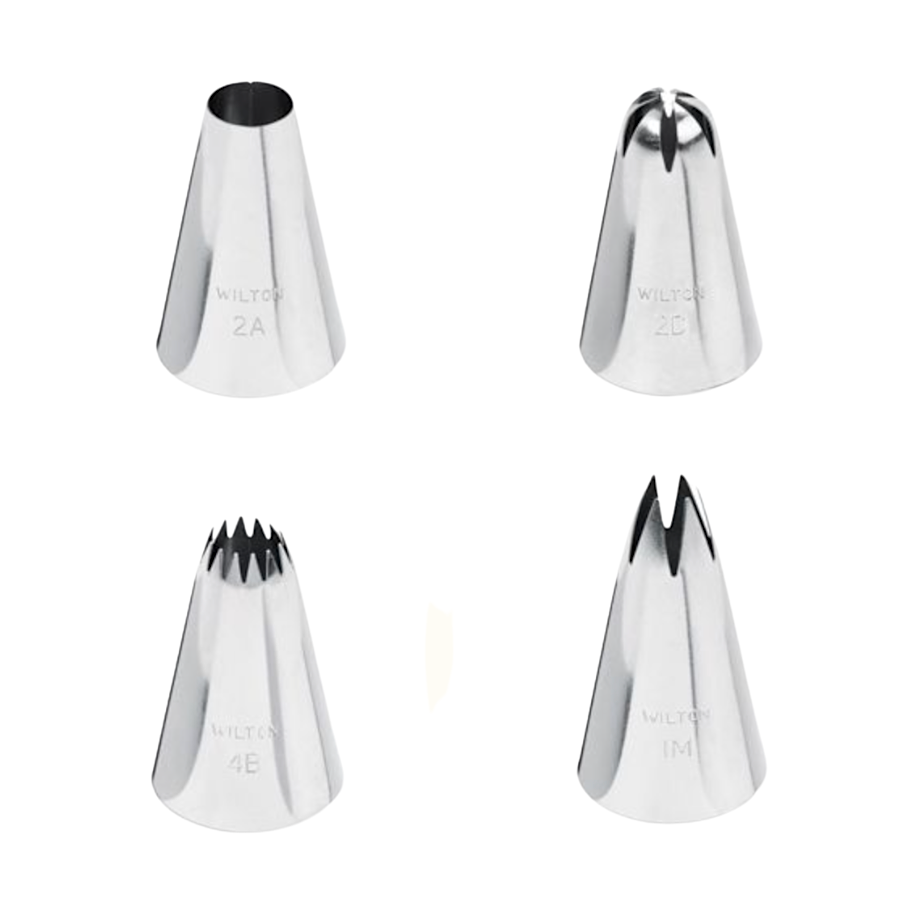 Práctico set de Wilton para decorar cupcakes, incluye 4 boquillas y 8 mangas pasteleras desechables.