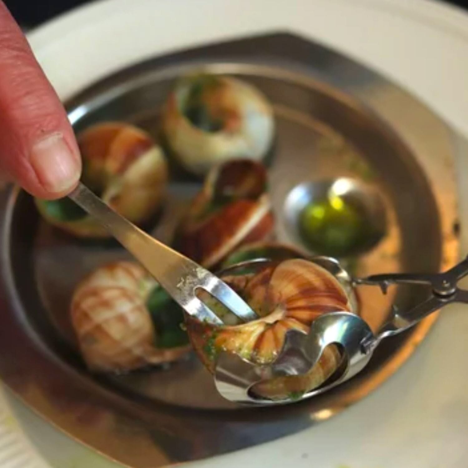 Set Pinzas Y Tenedor Para Caracoles De Acero Inoxidable