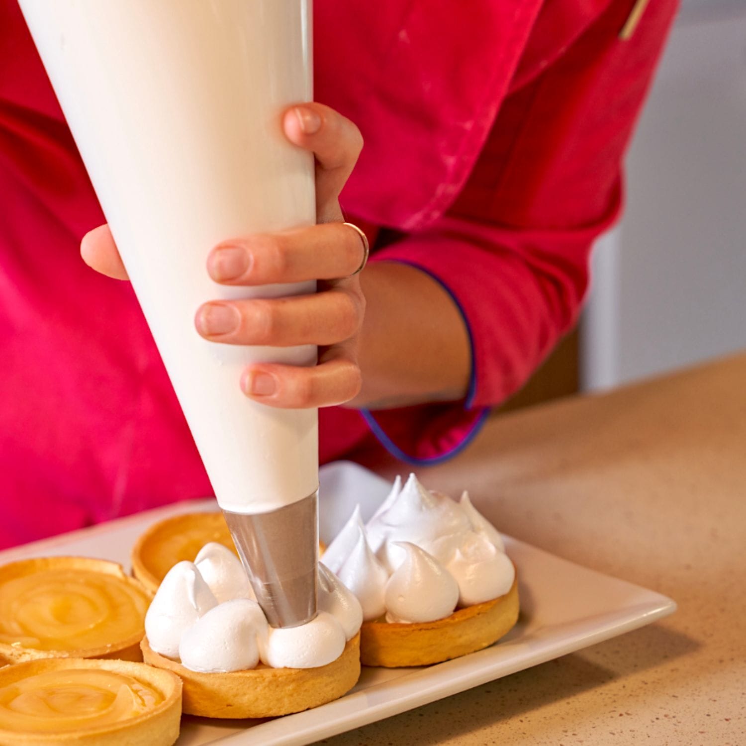 Inclui 24 sacos de pastelaria transparentes feitos de material multi-camadas 100% reciclável. Altamente resistente graças à sua dupla vedação.