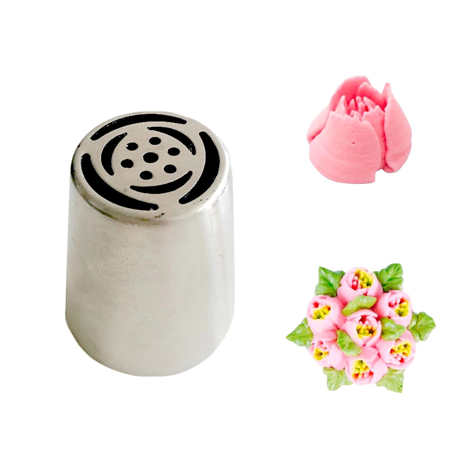 Graças ao seu design inovador, pode fazer flores de glacé ou de creme de manteiga de forma muito fácil e rápida: pode fixar o bico diretamente no saco de pasteleiro ou utilizar um adaptador de tamanho grande. Num instante, terá uma flor delicada perfeita para decorar as suas sobremesas!