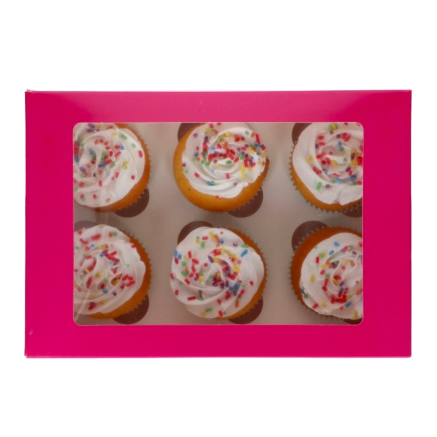 Caixa Para 6 Cupcakes [ou 12 Mini Cupcakes] Rosa Com Janela – Funcakes (3 U)