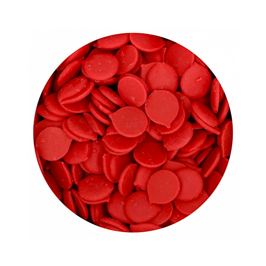 Estes Deco Melts "vermelhos" têm um delicioso sabor de chocolate branco cremoso. Pode colori-los facilmente com corantes alimentares amigos do chocolate.