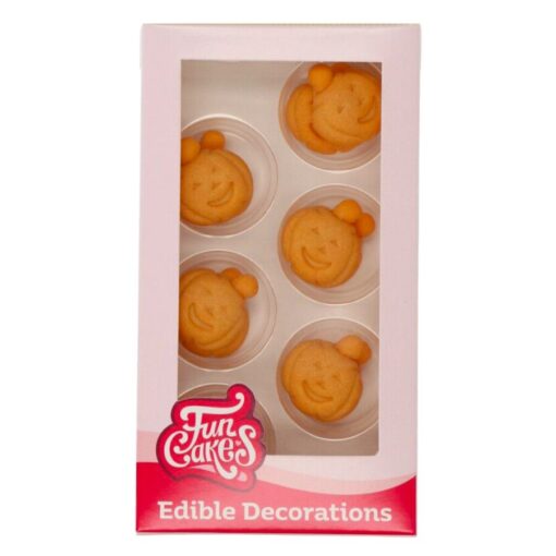 12 decorações de açúcar em forma de abóbora, ideais para fazer bolos originais de Halloween.