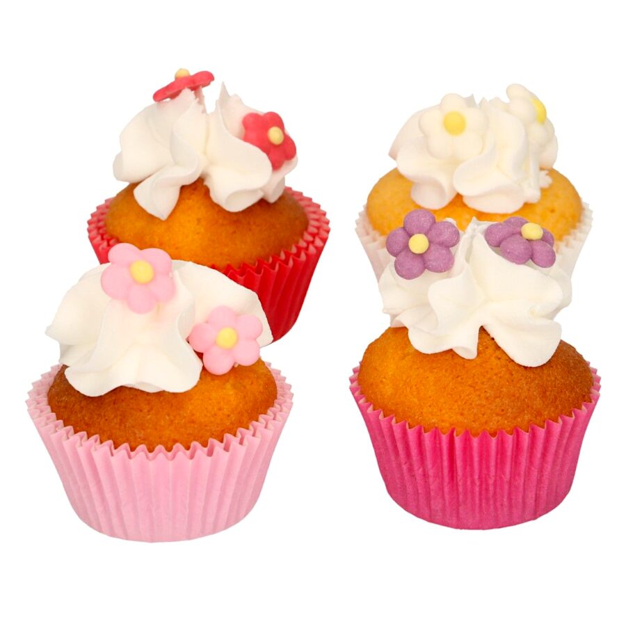 32 decorações de açúcar em forma de pequenas flores Funcakes, nas cores: branco, rosa, vermelho e púrpura.