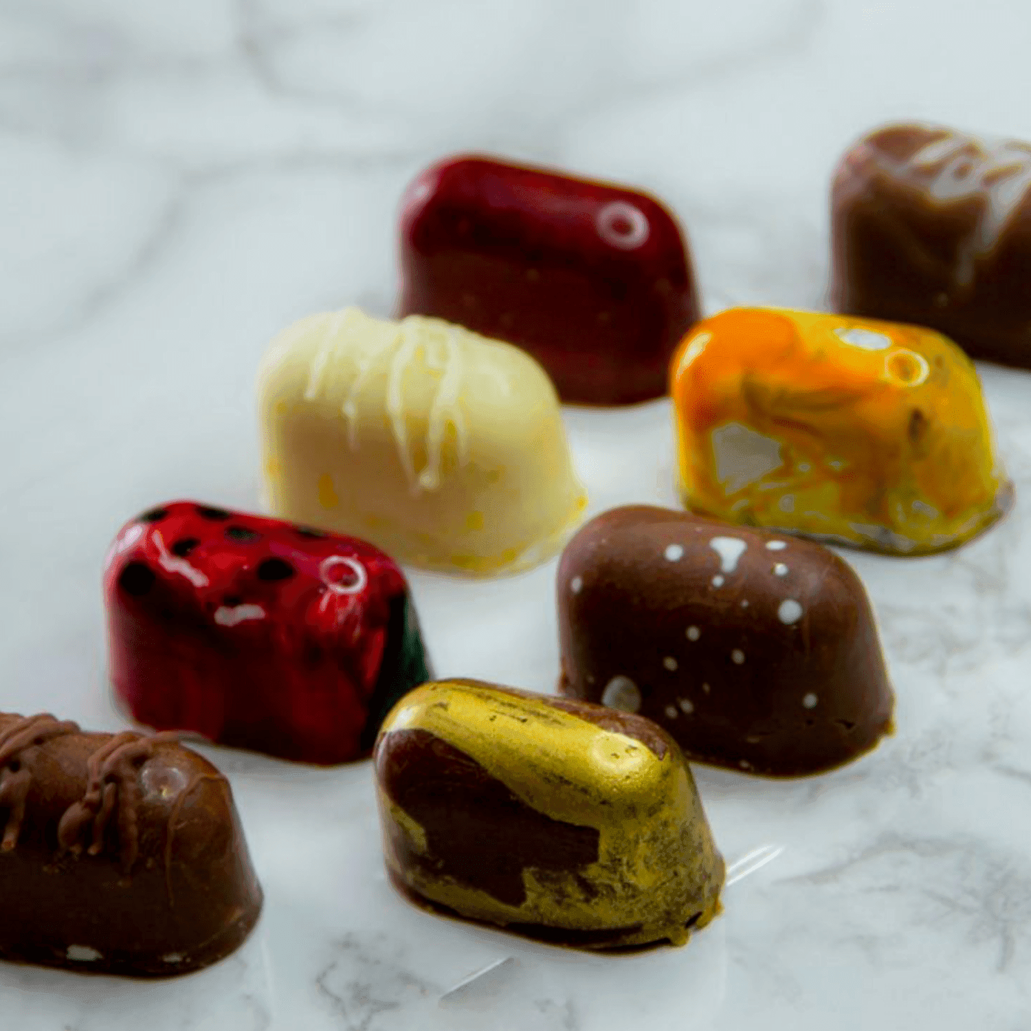 - Derreter e temperar o chocolate, deitá-lo até à linha marcada em cada cavidade e bater suavemente com o fundo da forma numa superfície plana para eliminar as bolhas de ar.