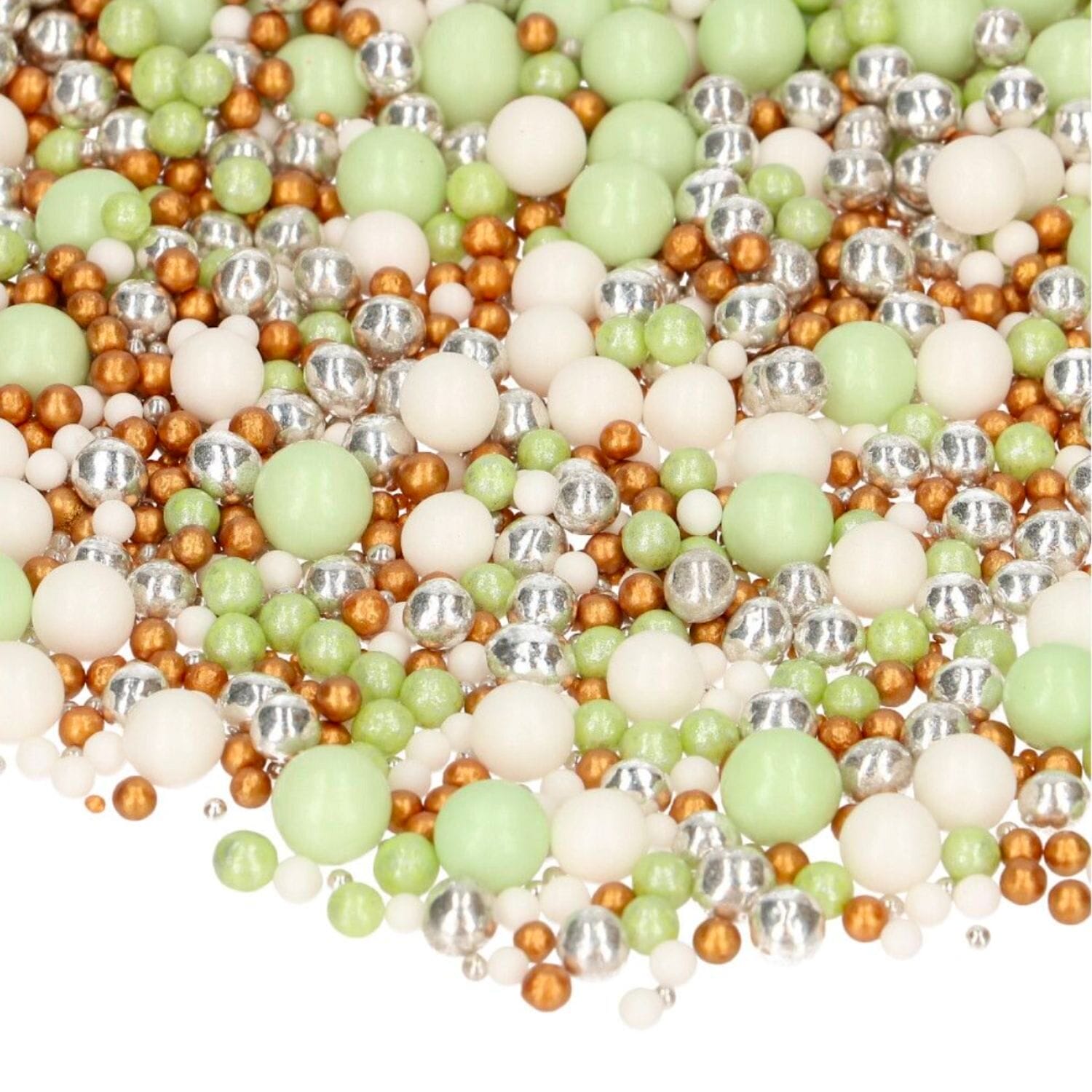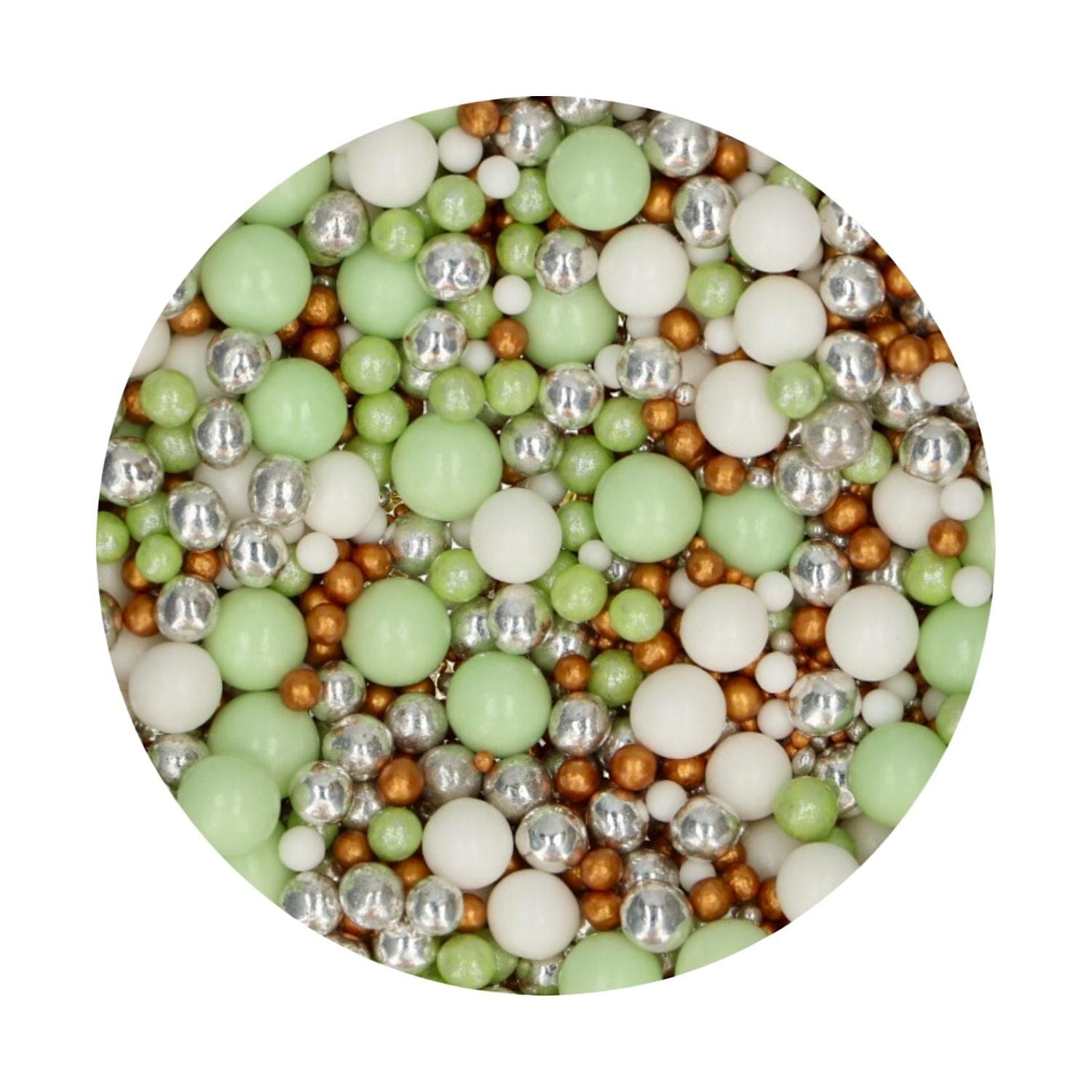 As pérolas de açúcar comestíveis da Funcakes são macias e fofinhas, e estão disponíveis em branco, verde, prateado e bronze brilhante. Perfeitas para batizados, comunhões, baby showers e muito mais.