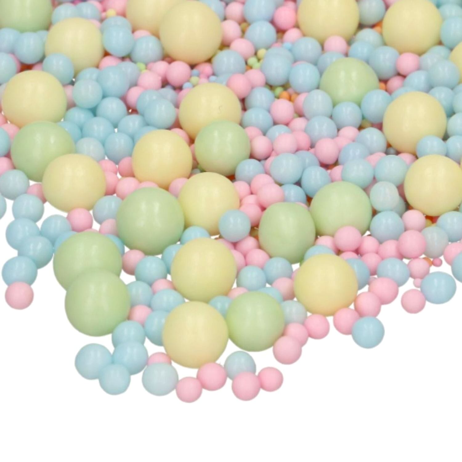 As pérolas de açúcar comestíveis da Funcakes são macias e fofinhas, e estão disponíveis em cores pastel (rosa, azul, amarelo, verde e laranja). Perfeitas para batizados, comunhões, baby showers, Páscoa e muito mais.