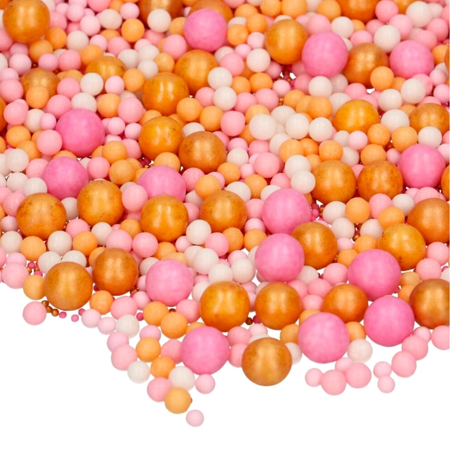 As pérolas de açúcar comestíveis da Funcakes são macias e fofinhas, em branco, rosa, laranja e dourado brilhante. Perfeitas para as nossas sobremesas de verão.
