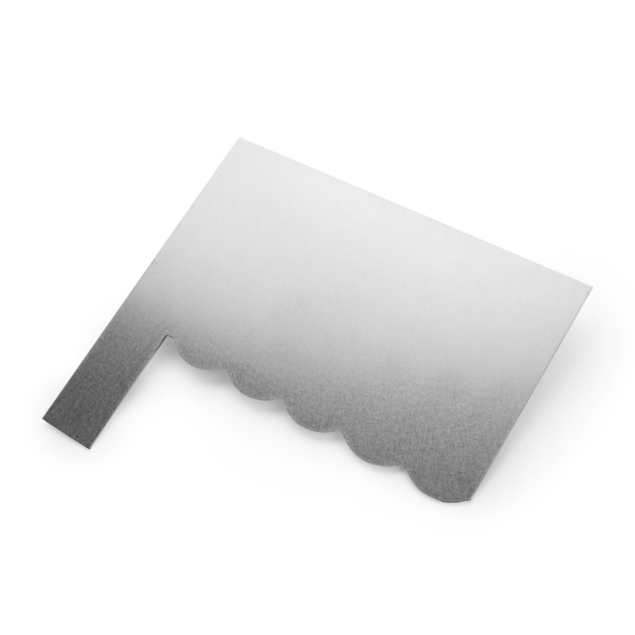 Raspador de contornos ideal para criar desenhos na lateral ou no topo dos nossos bolos, e alisar a superfície.