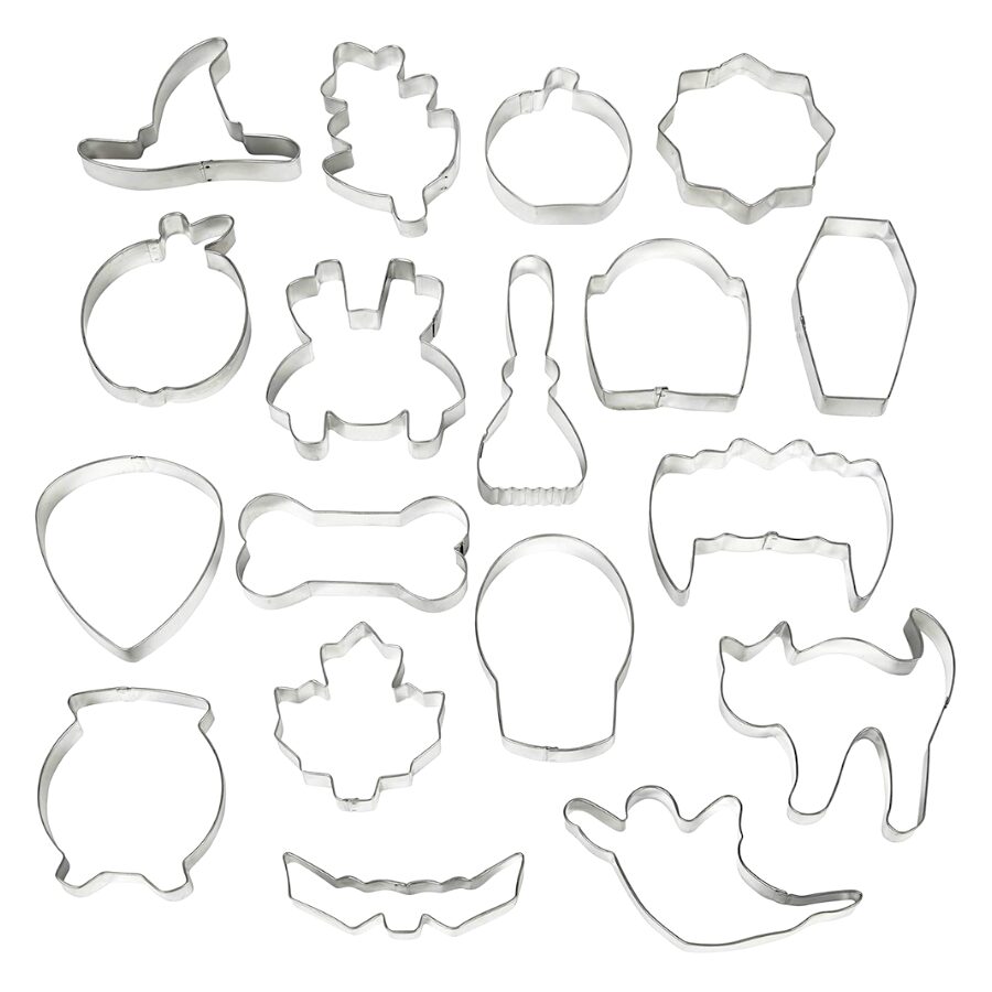 Faça biscoitos de Halloween originais e aterradores com este fantástico conjunto de 18 cortadores Wilton.
