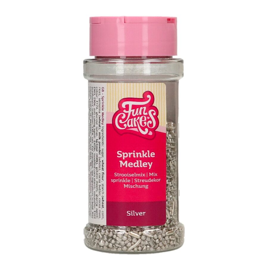 Mistura de decorações comestíveis Funcakes, ideal para decorar as nossas elaborações com um tom prateado brilhante.