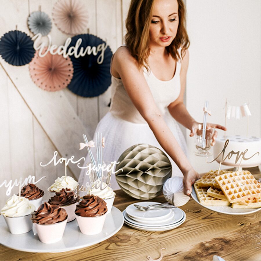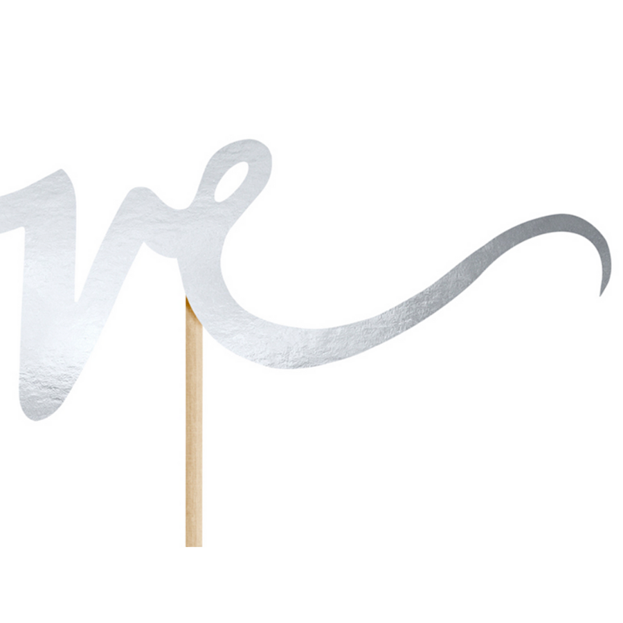 Elegante topper de prata para bolo por PartyDeco, ideal para decorar as nossas doces mesas.