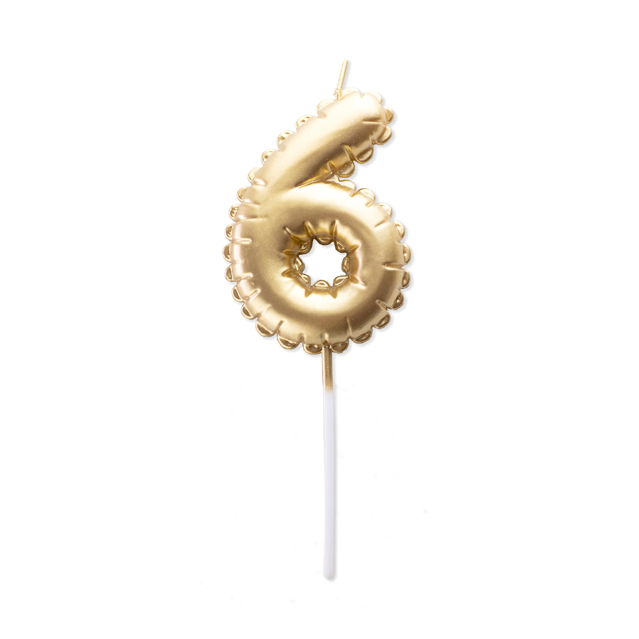 Vela de aniversário em forma de balão de cor dourada, ideal para dar um toque elegante e original aos aniversários.