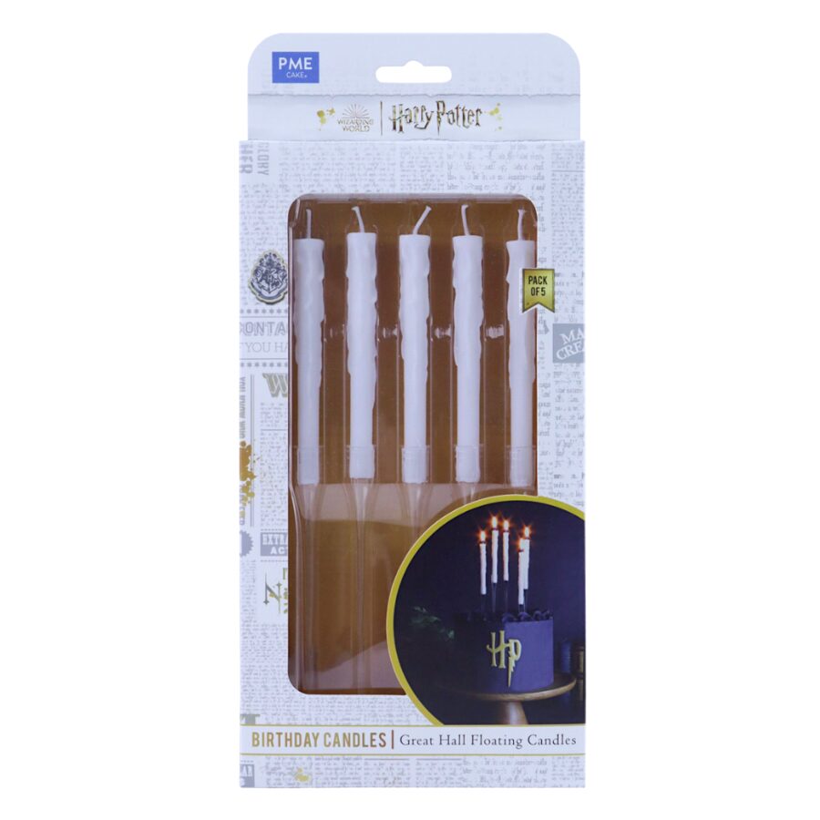 Conjunto de 5 velas Harry Potter Grand Dining Room da PME, com suporte transparente para as fazer parecer “flutuar” sobre o bolo.