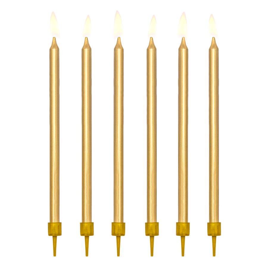 12 velas decorativas douradas da Partydeco, perfeitas para dar um toque de brilho às nossas elaborações.