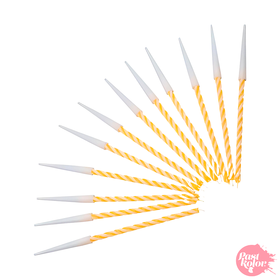 Pacote de 12 velas altas, juntamente com os suportes para pregá-las. Ilumine suas criações com altura!